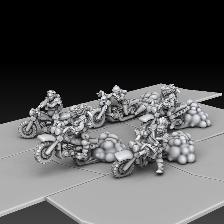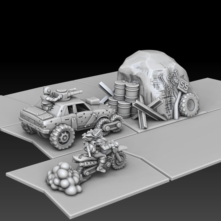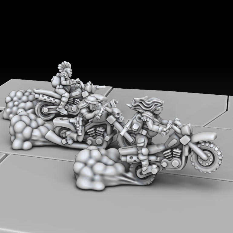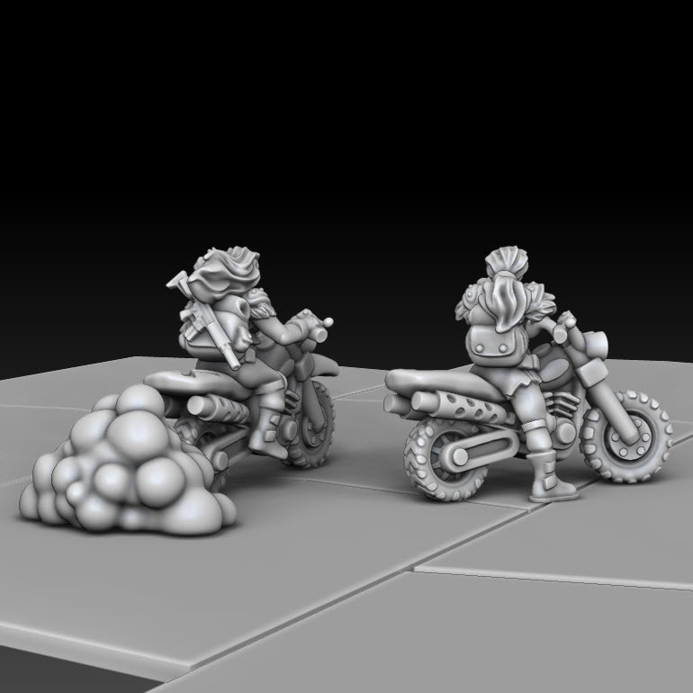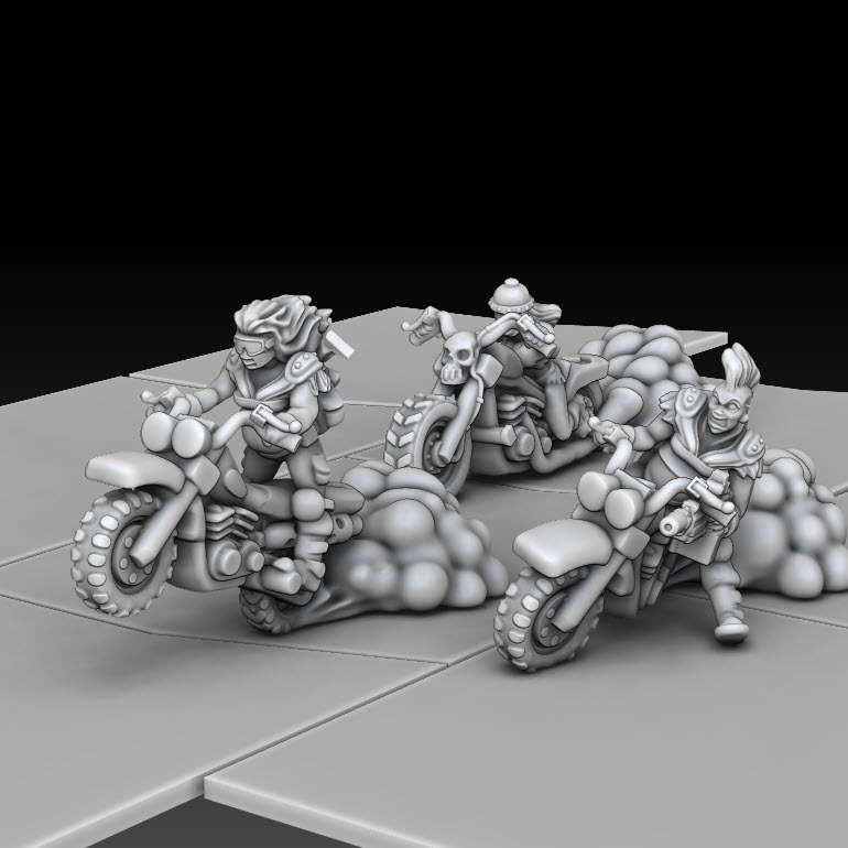 Motorcycle Mamas are here!! A small nod to the gals from Fury road, see if you can spot it. Also included a new Medium Car and a single space terrain piece.