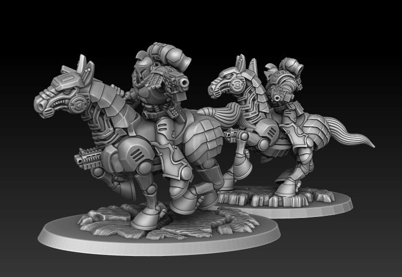 Who needs a bike when your badass soldier can ride a mechanical horse into battle instead! This squad of... riders... comes with several horse and rider poses as well as a plethora of gun and melee weapon options.